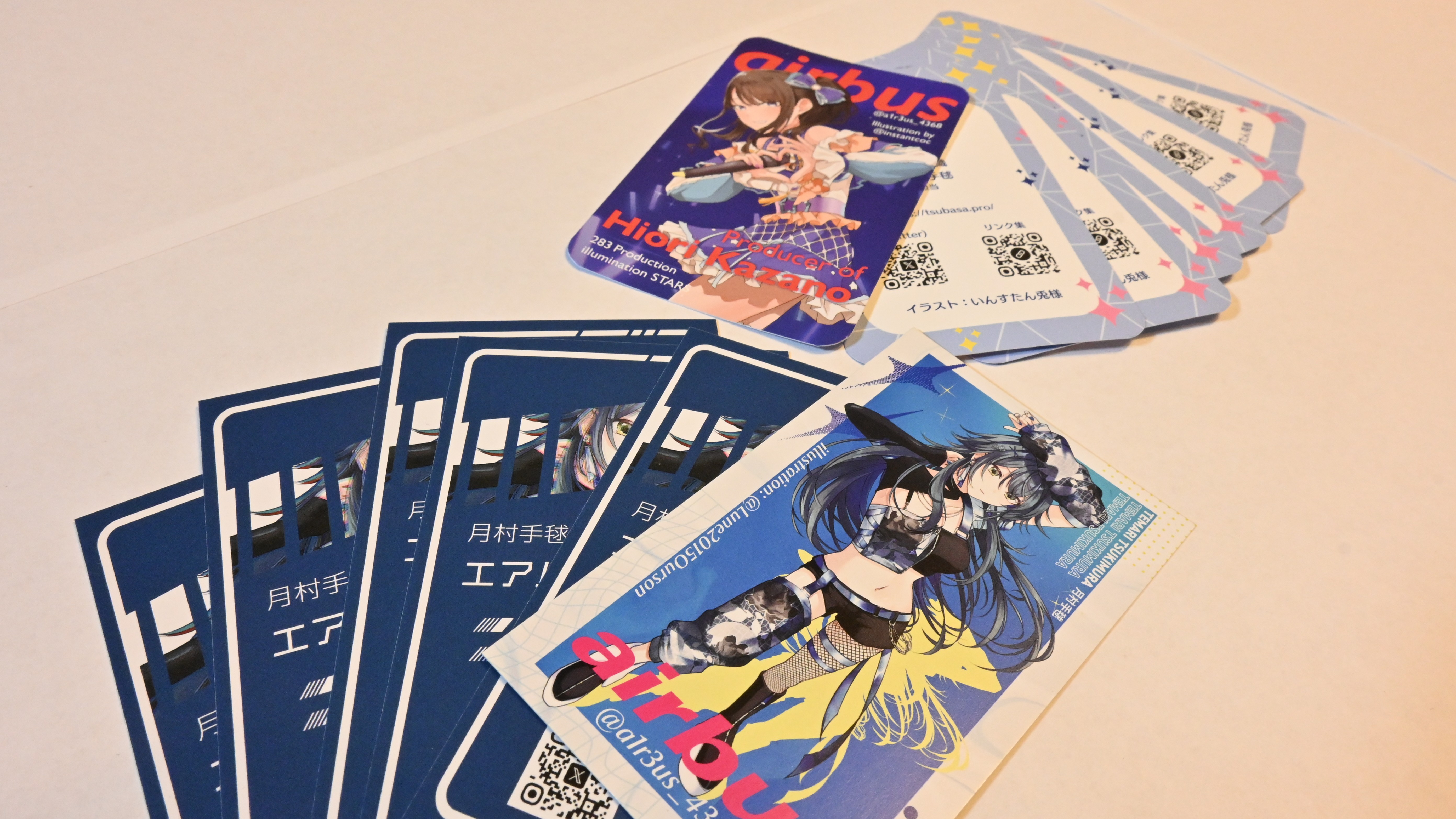 今回の円環ツアーで初めて一人で遠征をするにあたって、誰ともコミュニケーションを取らないのは寂しいなあということで、プロデューサー名刺(P名刺)というものを作ってみました。